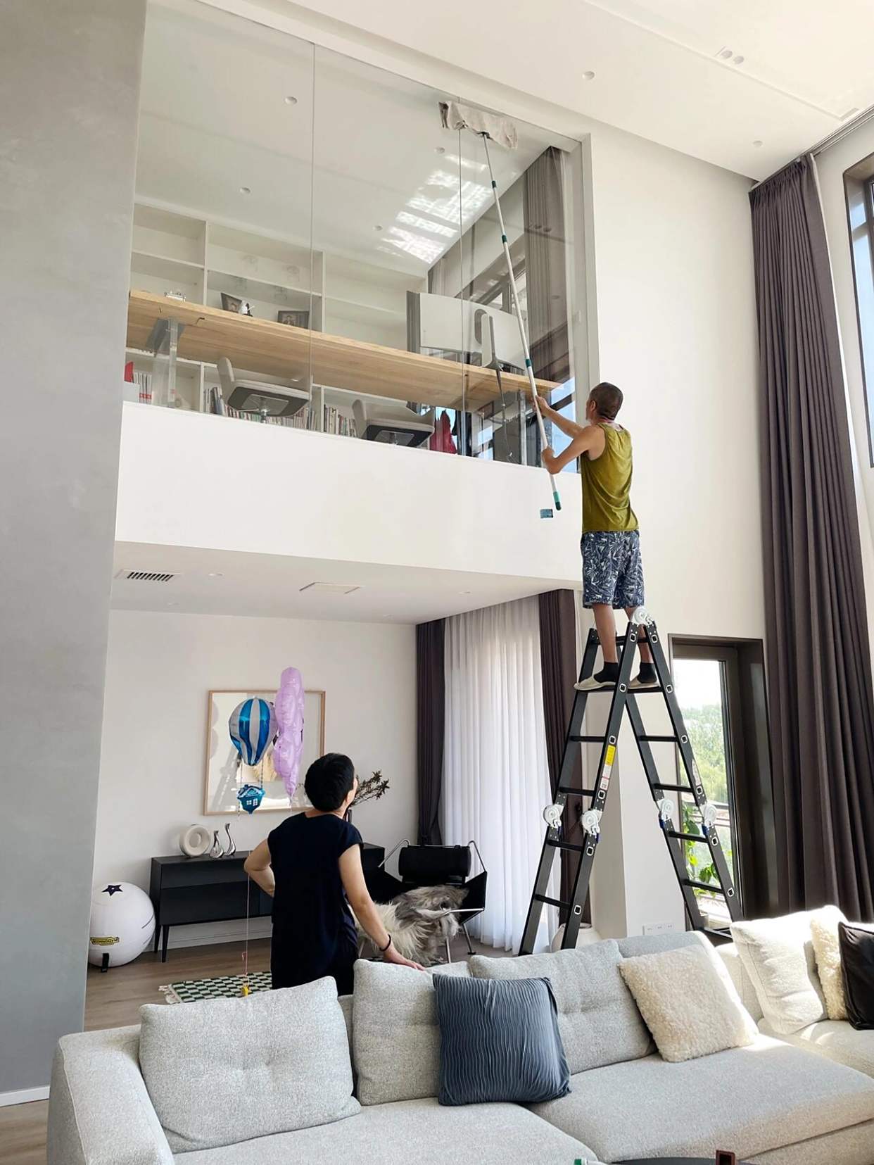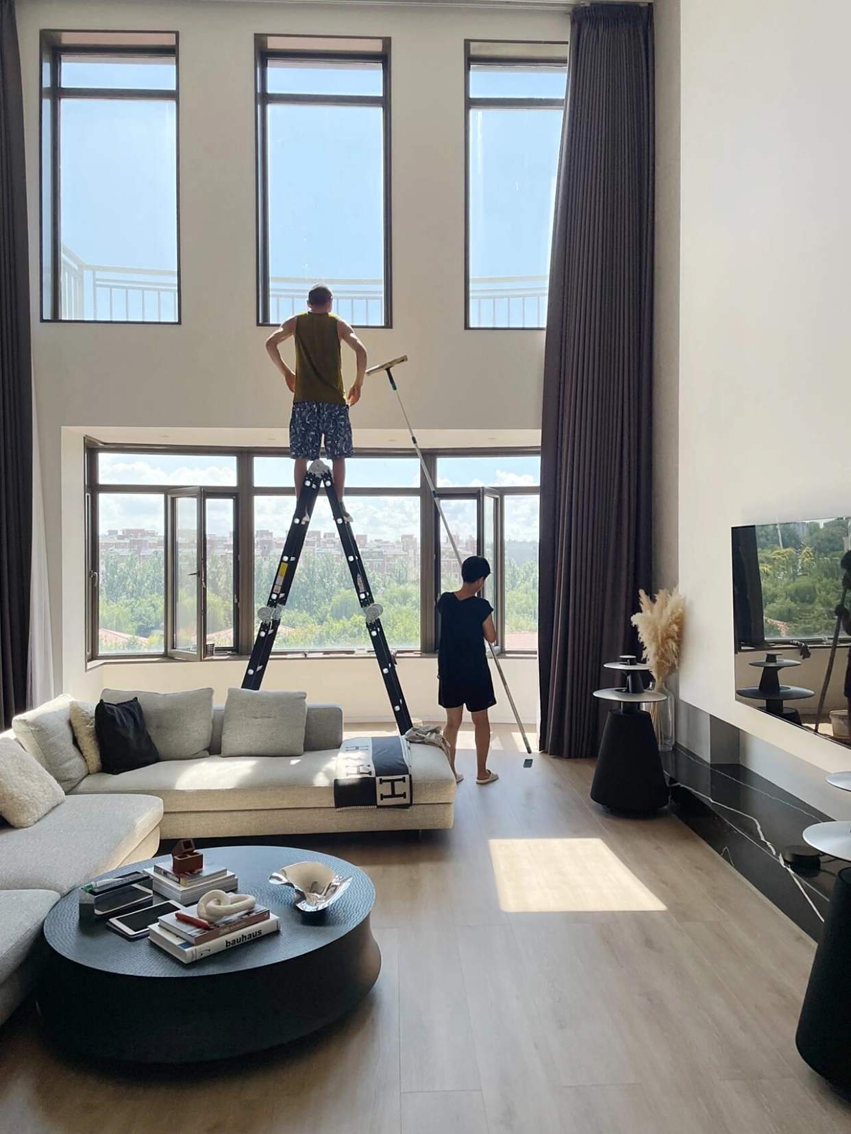 以前住平层晚上十几分钟就把地拖完了,现在拖十几分钟发现才拖了个角落。楼梯好难擦,天窗底下好多小虫子尸体,玻璃扶手都是孩子的油手印,又请不起保洁,这房子把人的精力都快耗完了。