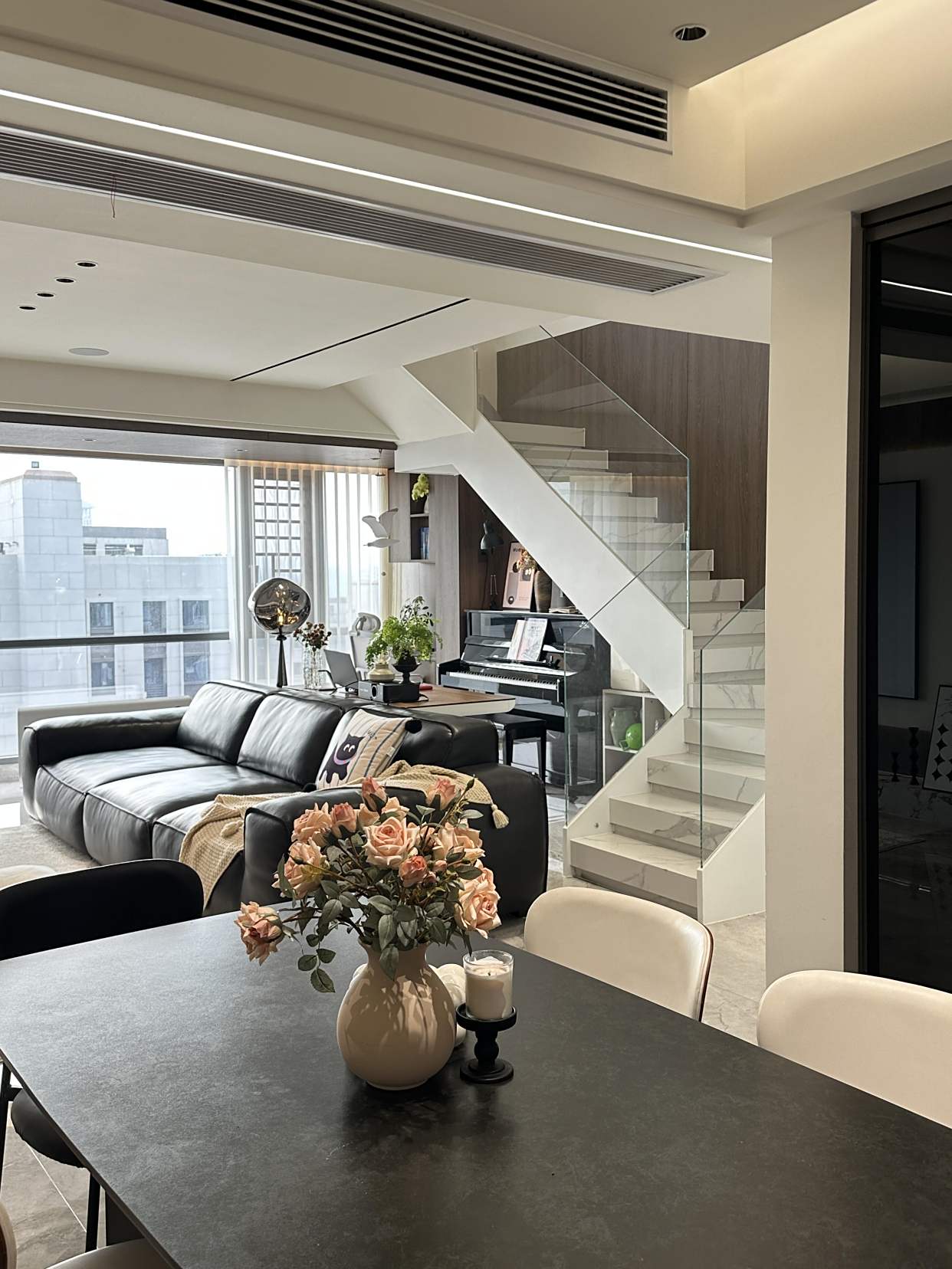 复式楼的空间感绝了,挑空客厅加承上启下的楼梯,视觉效果就像是别墅一样,大面积的窗户或天窗,最大化引入自然光,使室内更加敞亮通透。
