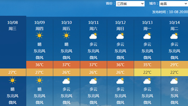 南方秋老虎则会继续发威,炎热天气持续,尤其是江南、华南仍有大范围高温天气。江西及周边地区将是高温最强盛的地方,未来7天高温日数可达5至7天,湖南东部、江西中北部、浙江西部等地最高气温还可能达到37℃至39℃,热得同期少见,如同穿越回了大暑。