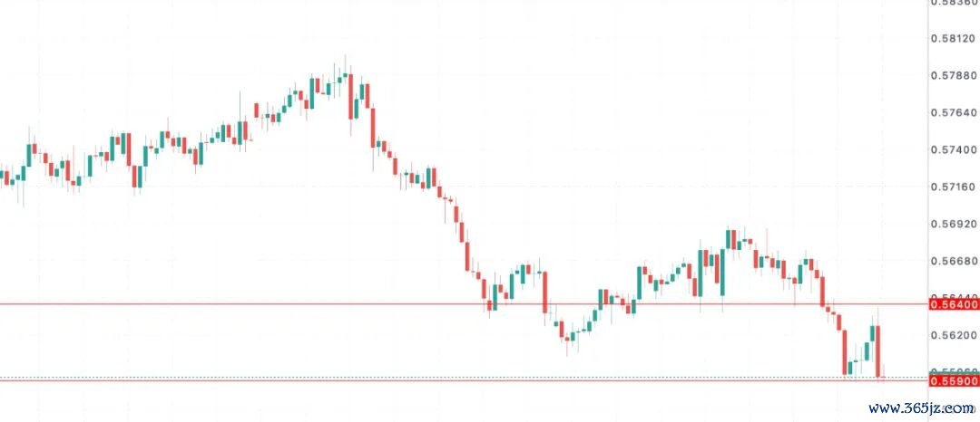 然而,尽管纽币当前位于0.5590低点附近区域维持一线支撑,但仓位盘口反馈被动姿态显著,防御性仓位影子再现反映汇价下行延续风险仍维系较高水平。因此,技术传导逻辑提示纽币短线在未能成功收复0.5640区域失地之前,买方需对其汇价尝试“低位追涨”以及充分溢价看涨的情绪保持相对谨慎。与此同时,如若价格走势当前位于0.5590低点区域所形成的静态支撑防守区未能为纽币多头提供安全底座,则需紧惕市场空头情绪进一步释放,从而导致汇价放量下行并倾向于延续走低测试0.5560目标区域水平的风险加剧。